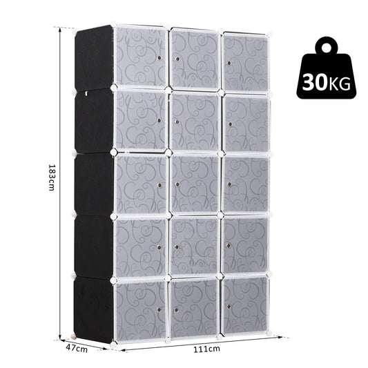 HOMCOM DIY Wardrobe Portable Interlocking Plastic Modular Closet Bedroom Clothes Storage Cabinet Cube Organiser