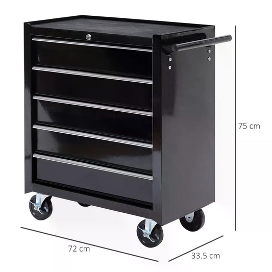HOMCOM Cold Rolled Steel 5-Drawer Rolling Tool Storage Cabinet Tool Chest Black