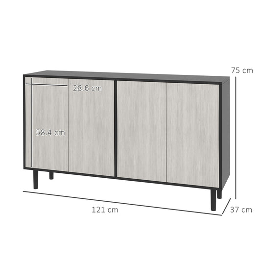 HOMCOM Kitchen Sideboard Storage Cabinet for Living Room with Adjustable Shelves 4 Doors and Pine Wood Legs Black
