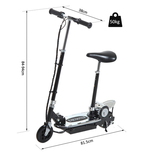 HOMCOM 120W Teens Foldable Kids Powered Scooters 24V Rechargeable Battery Adjustable Ride on Outdoor Toy (Black)
