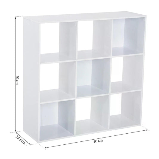 HOMCOM Wooden 9 Cube Storage Unit with3 Tier Shelves Organiser Display Rack Living Room Bedroom Furniture - White