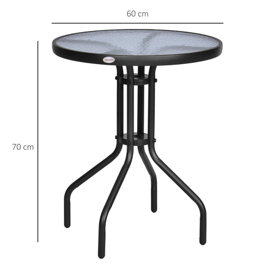 Outsunny 60-70H cm Round Metal Table, Garden Table Tempered Glass-Black