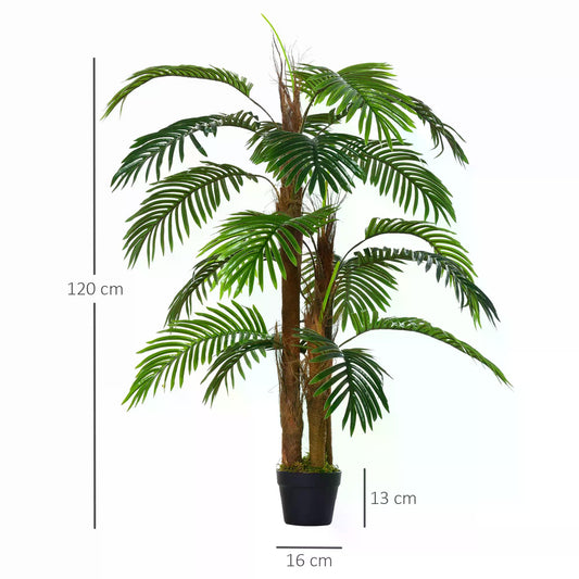 Outsunny 120cm/4FT Artificial Palm Tree Decorative Plant with 19 Leaves Nursery Pot Fake Plastic Indoor Outdoor Greenery Home Office Decor