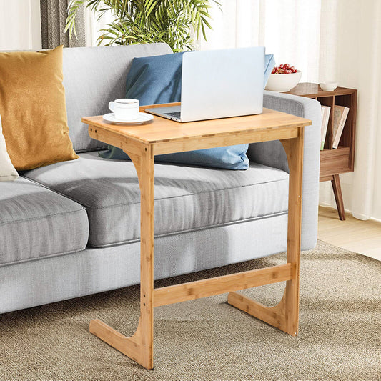 C-ShapedBamboo Side Table with 7 Adjustable Angles-Natural
