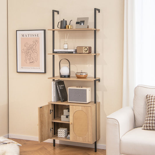 Wall Mount Bookshelf with Cabinet with Storage Cabinet-Natural
