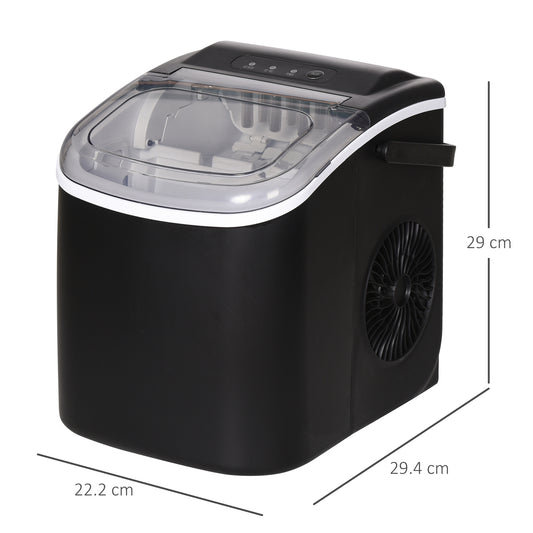 HOMCOM Ice Maker Machine Counter Top, 12Kg in 24 Hrs, 9 Cubes Ready in 6-12Mins, Portable Ice Cube Maker with Ice Scoop and Basket, Black