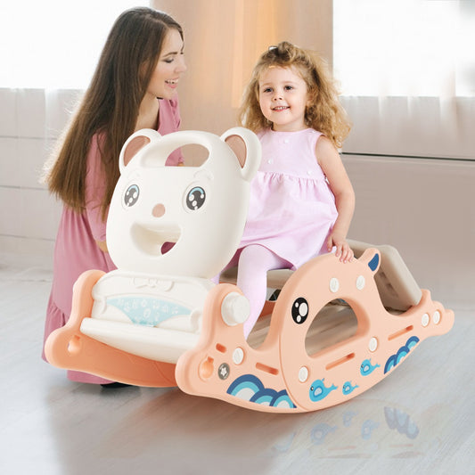 4-in-1 Kids Slide Rocking Horse with Basketball & Ring Toss for Kids 1-4 Years Old-Pink