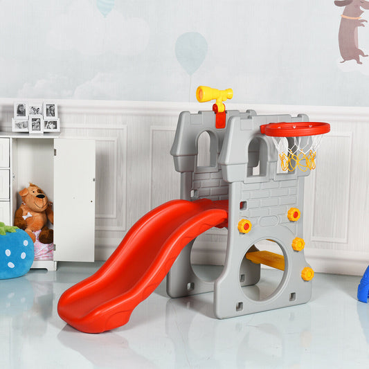 Toddler Climber Castle Slide Set with Basketball Hoop for In / Outdoor