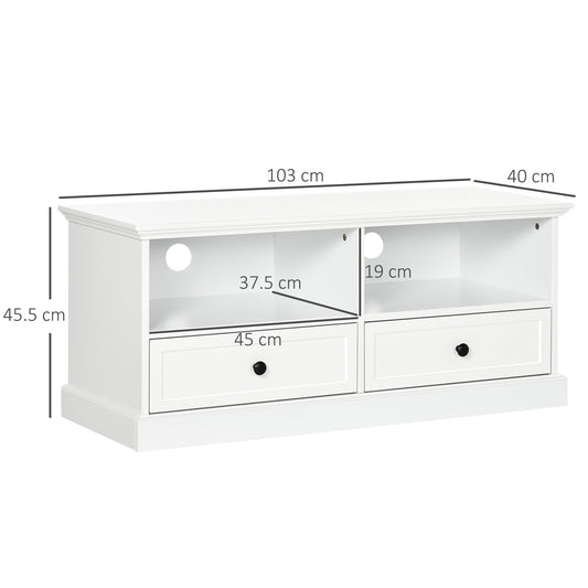 HOMCOM Modern TV Unit Cabinet for TVs up to 45 Inches, TV Stand with Drawers, Open Shelves, Cable Holes for Living Room, White