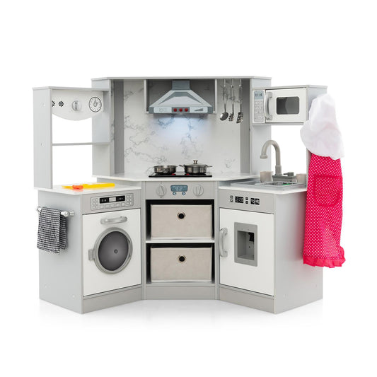 Wooden Kids Play Kitchen Corner with Lights and Water Circulation System-Grey