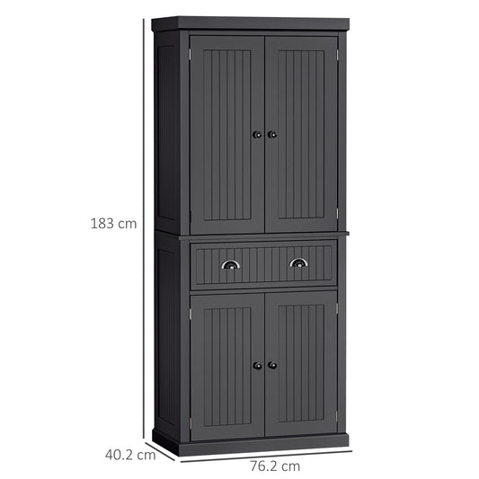HOMCOM Traditional Colonial Freestanding Kitchen Cupboard Storage Cabinet - 76L x 40.5W x 184H (cm) Dark Wood Grain