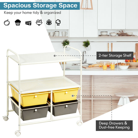 Utility Organiser Cart with 4 Plastic Drawers-Multicolor