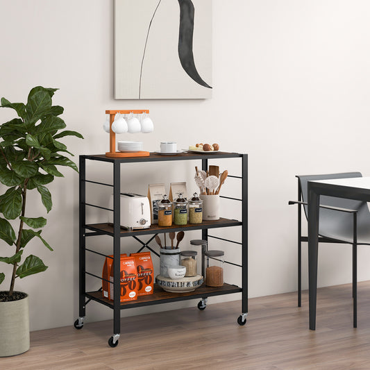 3-Tier Utility Cart Storage Trolley with 10 Removable Hooks-Rustic Brown