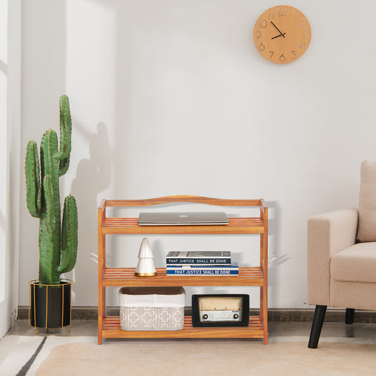 Solid Acacia Wood Shoe Rack Shelf with Side Metal Hooks-3-Tier