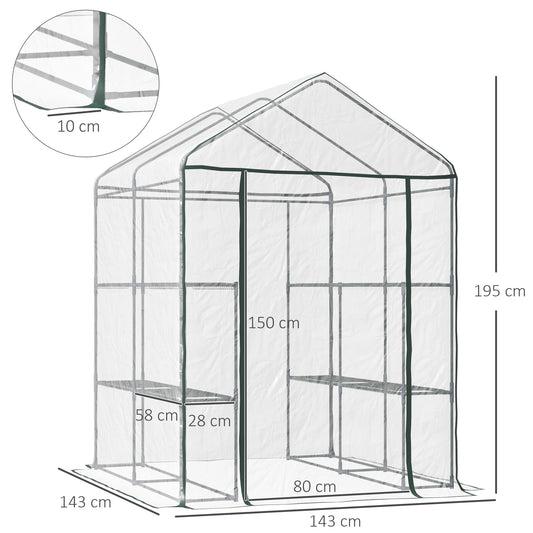 Outsunny 143 x 143 x 195 cm Walk-In Greenhouse 3 Tiers Portable Grow House with 8 Shelves, Metal Frame, PVC Film, Transparent