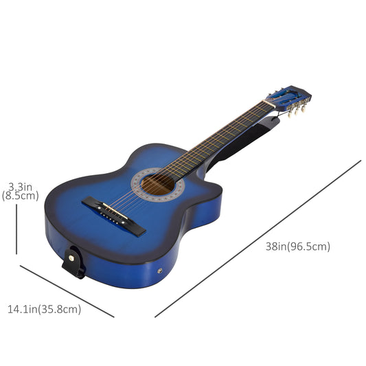 HOMCOM 38in Beginner Cutaway Acoustic Electric Guitar Premium Gloss Finish withCase