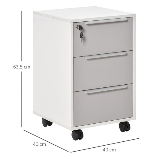 HOMCOM 3-Drawer Locking File Cabinet Mobile Chest of Drawers Side Table on Wheels for Home Office, Bedroom and Living room