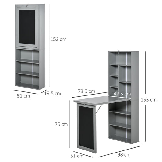 HOMCOM Fold-out Convertible Writing Desk Wall Mount Cabinet with Blackboard and Side Shelf Multi-Function Home Office Workstation, Grey