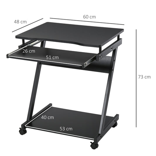 HOMCOM Movable Compact Small Computer Desk with 4 Moving Wheels Sliding Keyboard Tray Home Office Gaming Study Workstation Black