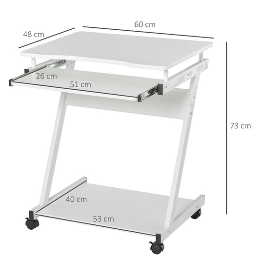 HOMCOM Movable Compact Small Computer PC Desk with 4 Moving Wheels Sliding Keyboard Tray Home Office Gaming Study Workstation White