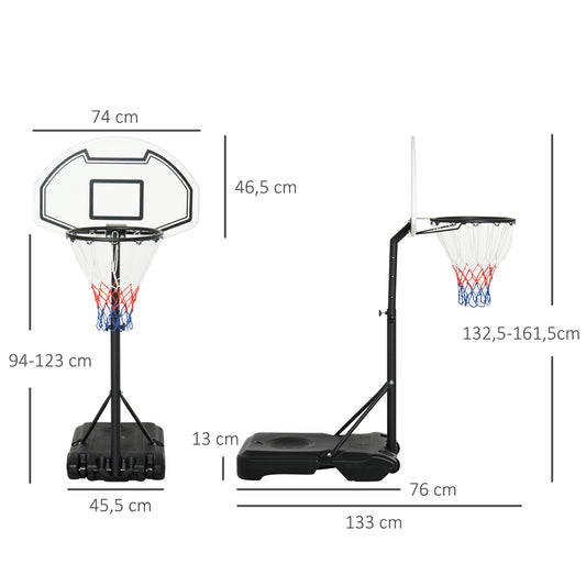 HOMCOM Basketball Stand 94-123cm Basket Height Adjustable Hoop For Kids Adults Suitable for Pool Side