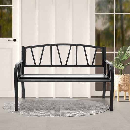 2-Person Metal Outdoor Bench with Backrest and Armrests-Black