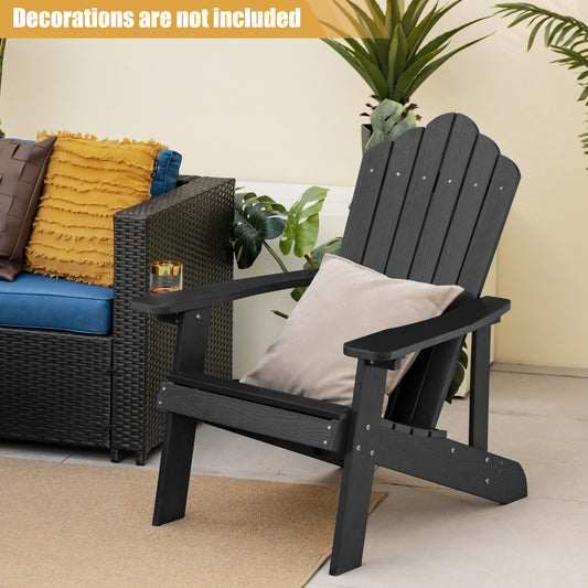 Adirondack Chair with Movable Cup Holder for Fire Pit Beach Deck -Black