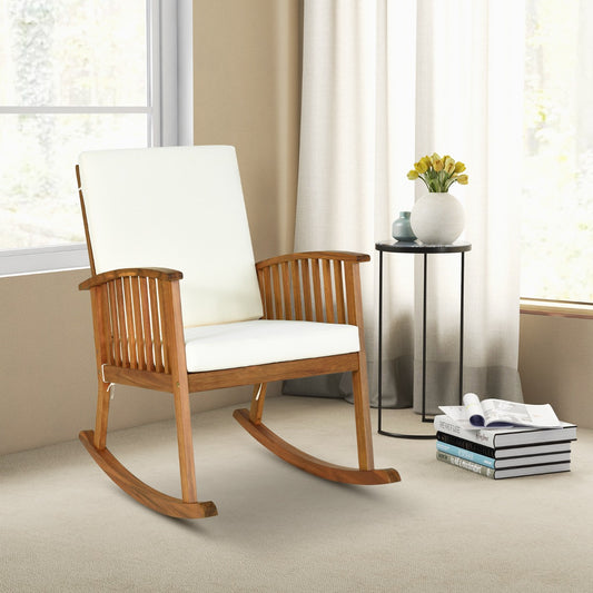 Patio Rocking Chair Acacia Wood Rocker with Seat & Back Cushions