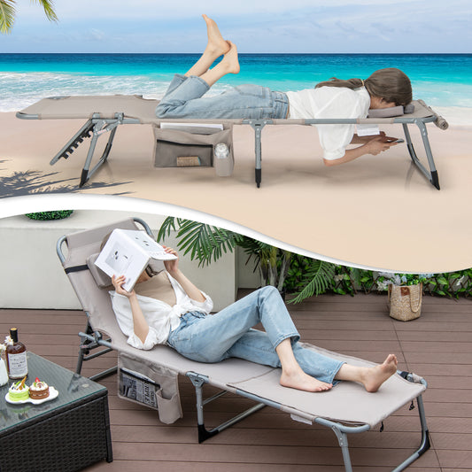 Outdoor 5-position Folding Chaise Lounge Chair with Adjustable Footrest-Beige