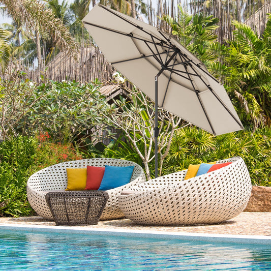 3 Meter Double Vented Outdoor Umbrella with Push Button Tilt and Manual Crank-Beige