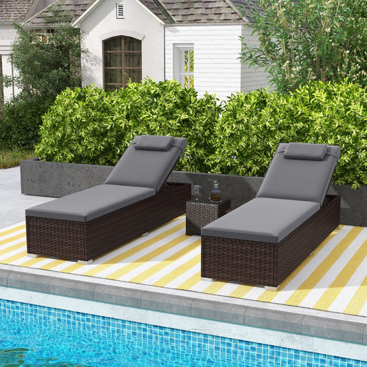 Outdoor PE Rattan Lounge Chair with 6-level Backrest and Comfy Seat Cushion-Grey