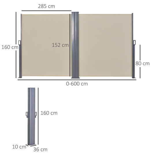 Outsunny 6 x 1.6 M Double Canopy Pull-Out Side Awning Sun Rain Outdoor Protection with Steel Frame Retractable Garden Privacy Home Commercial Beige