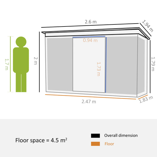 Outsunny Pent Roofed Metal Garden Shed House Hut Gardening Tool Storage with Ventilation 260L x 194W x 200H cm