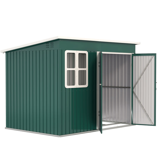 Outsunny 8.5 x 6ft Storage Shed Galvanised Steel Garden Shed, Metal Shed with Foundation Kit, Window, Lockable Wide Doors and Air Vents for Outdoor Patio, Green