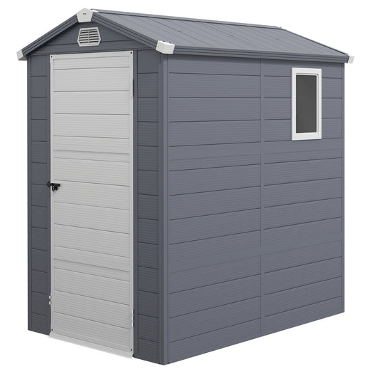 Outsunny 6 x 4ft Garden Shed, Plastic Shed with Floor, Window, Lockable Door and Vents, Wood Effect Resin Tool Shed for Outdoor, Grey