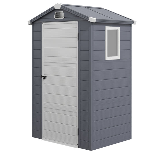 Outsunny 4'x5' Garden Storage Shed, Lean to Shed, Lockable Garden Shed with Window, Vent and Plastic Roof, Grey