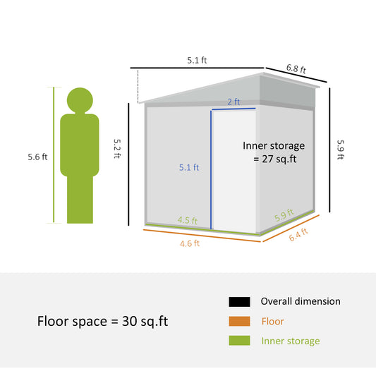 Outsunny 5 x 3ft Garden Storage Shed with Sliding Door and Sloped Roof Outdoor Equipment Tool Garden, Green