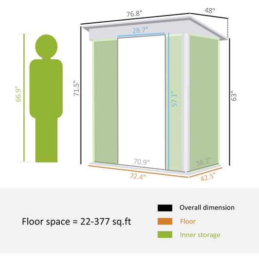 Outsunny 6.5 x 4FT Galvanised Metal Shed with Foundation, Lockable Tool Garden Shed with Double Sliding Doors and 2 Vents, Green