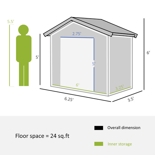 Outsunny 6.5x3.5ft Metal Garden Storage Shed for Outdoor Tool Storage with Double Sliding Doors and 4 Vents, Dark Grey