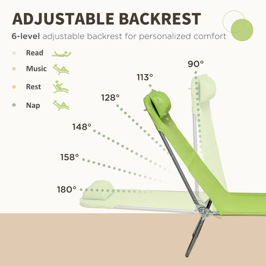 Outsunny Folding Sun Lounger Set of 2, Outdoor Day Beds with Pillow, Reclining Back, Steel Frame and Breathable Mesh for Beach, Yard, Patio, Green