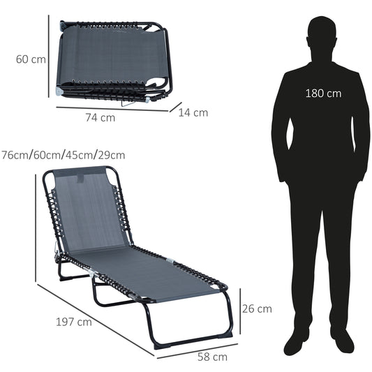 Outsunny Folding Sun Lounger Beach Chaise Chair Garden Reclining Cot Camping Hiking Recliner with 4 Position Adjustable Back - Grey