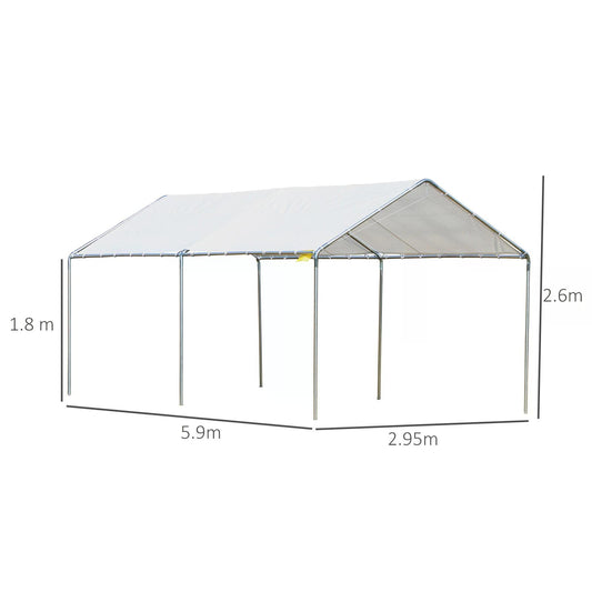 Outsunny 3 x 6m Heavy Duty Carport Garage Car Shelter Galvanized Steel Outdoor Open Canopy Tent Water UV Resistant Waterproof, White