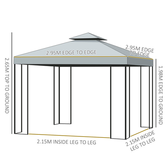 Outsunny 3 x 3 m Garden Metal Gazebo Marquee Patio Wedding Party Tent Canopy Shelter with Pavilion Sidewalls (Dark Grey)