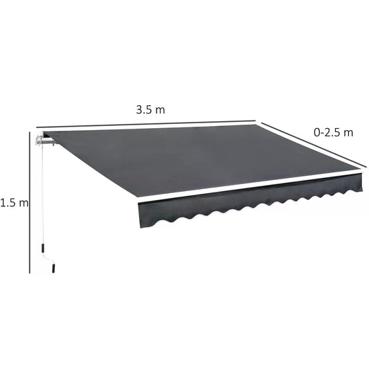 Outsunny 3.5M x 2.5M Manual Awning Canopy Retractable Sun Shade Shelter Winding Handle for Garden Patio Grey