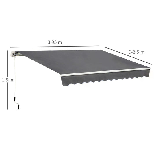 Outsunny 4x2.5m Retractable Manual Awning Window Door Sun Shade Canopy with Fittings and Crank Handle Grey