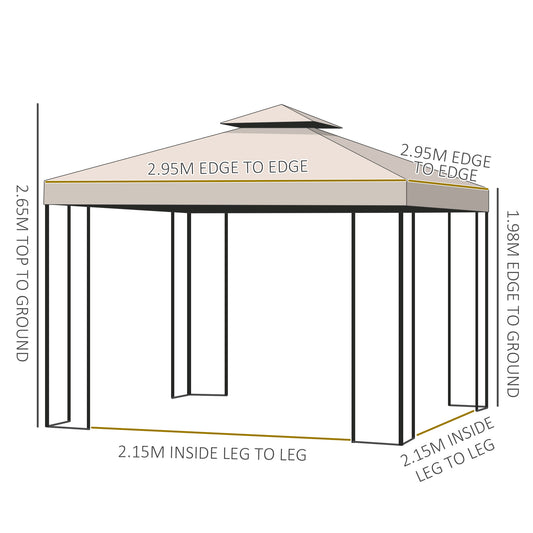 Outsunny 3 x 3 m Garden Metal Gazebo Marquee Patio Wedding Party Tent Canopy Shelter with Pavilion Sidewalls (Beige)