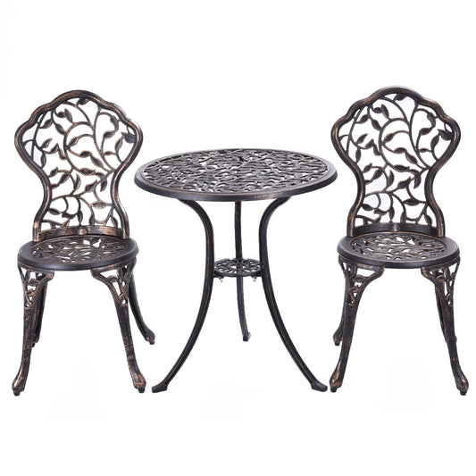 3-Piece Outdoor Bistro Set with Rust-Resistant Cast Aluminum and Leaf Design