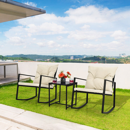 3 Pieces Rocking Chair and Glass Coffee Table Set-Beige