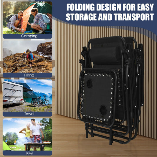 3 Pieces Zero Gravity Lounge Chair Set with Tea Table-Black