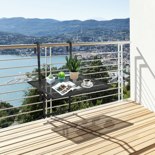 Folding Railing Table with 3-Level Adjustable Height for Patio-Black